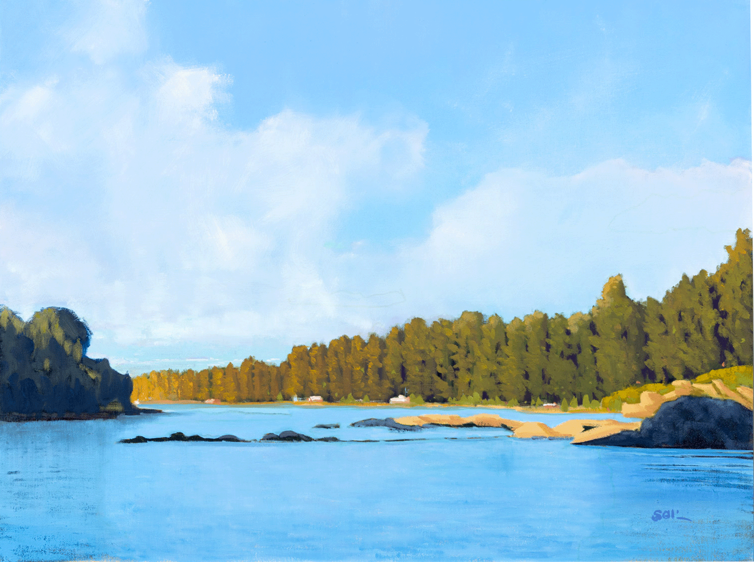 The revival of “On the Willamette” by Graham Salisbury. Revised original now for sale as an 18x24” oil, likely to sell fast with the lively clouds and reflection he embellished it with.